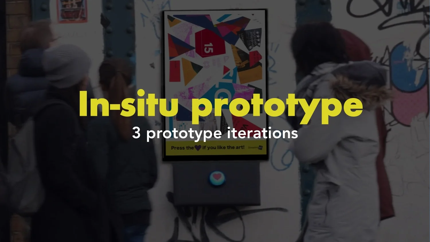 StreetHeart is a service concept that gives the underprivileged the power to upload, exhibit and sell their artworks independently. Through public displays spread around the city, their art can reach larger audiences and the public can send their appreciation directly to the artists. We believe that this could have an impact on decreasing prejudice against homeless and serving as an incentive to the artists to keep developing their creativity.